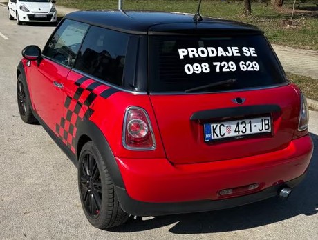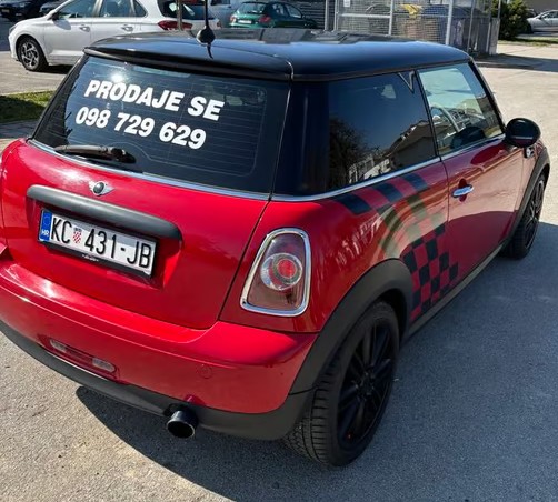 Prodaje se Mini Cooper, 6 brzina. 2012 godina. Registriran do 11/2025. 200.000 kilometara. Upravo napravljen servis. Alu 17", klima, el. podizači, el. podešavanje retrovizora, ambijentalna svjetla, maglenke, 8xzračni jastuci, Servisna, uredan, atraktivan Tel. 098 729 629